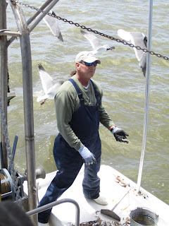 After our visit to Vicksburg we drove down to Long Beach MS. We met up with our friends the Chatwins and shared the rental house very close to the beach. The house was really nice and worked out perfectly. We played on the beach, went to a local food dive and took a shrimping tour. Benson loved the beach the first time we went there it was chilly so I was not going to let him in the water but he decided otherwise and was freezing with purple lips but would just keep going back in. The second time we went the weather was warmer so he really got into playing in the water. The place we went to eat was called Darwell's cafe. We sat outside and listened to a live band it was a fun atmosphere with mediocre food. The shrimping tour was really fun. I was pleasantly surprised with how good it was. They took us out just trolling along pulling a net and talking all about shrimping and then half way through the trip they pull in the nets and show you what they caught and talk about all of that and all the places to go get good fresh seafood. Along the boat as well there were dolphins following us so it was fun to watch them. After they had talked up the seafood so much all of us non seafood lovers decided that we had never had fresh seafood so we should at least give it a try. So we went down to Aunt Jenny's and ordered some fried shrimp and some shrimp creole. It was better than any seafood that I have ever tried but it was still not my favorite. Benson seemed to like it and Bret agreed it was better than anything he had before. I was not ready to leave this fun place. I was so glad that we went!